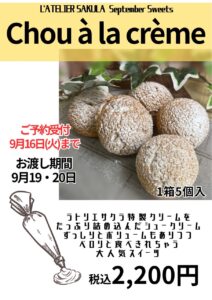 今月のマンスリースイーツはラトリエサクラで人気のシューアラクレームです。